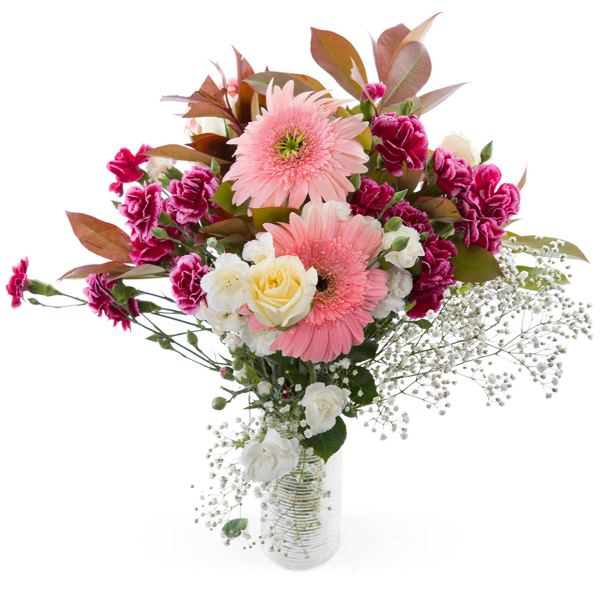 | Состав | Гвоздики, Герберы, Гипсофила, Розы |