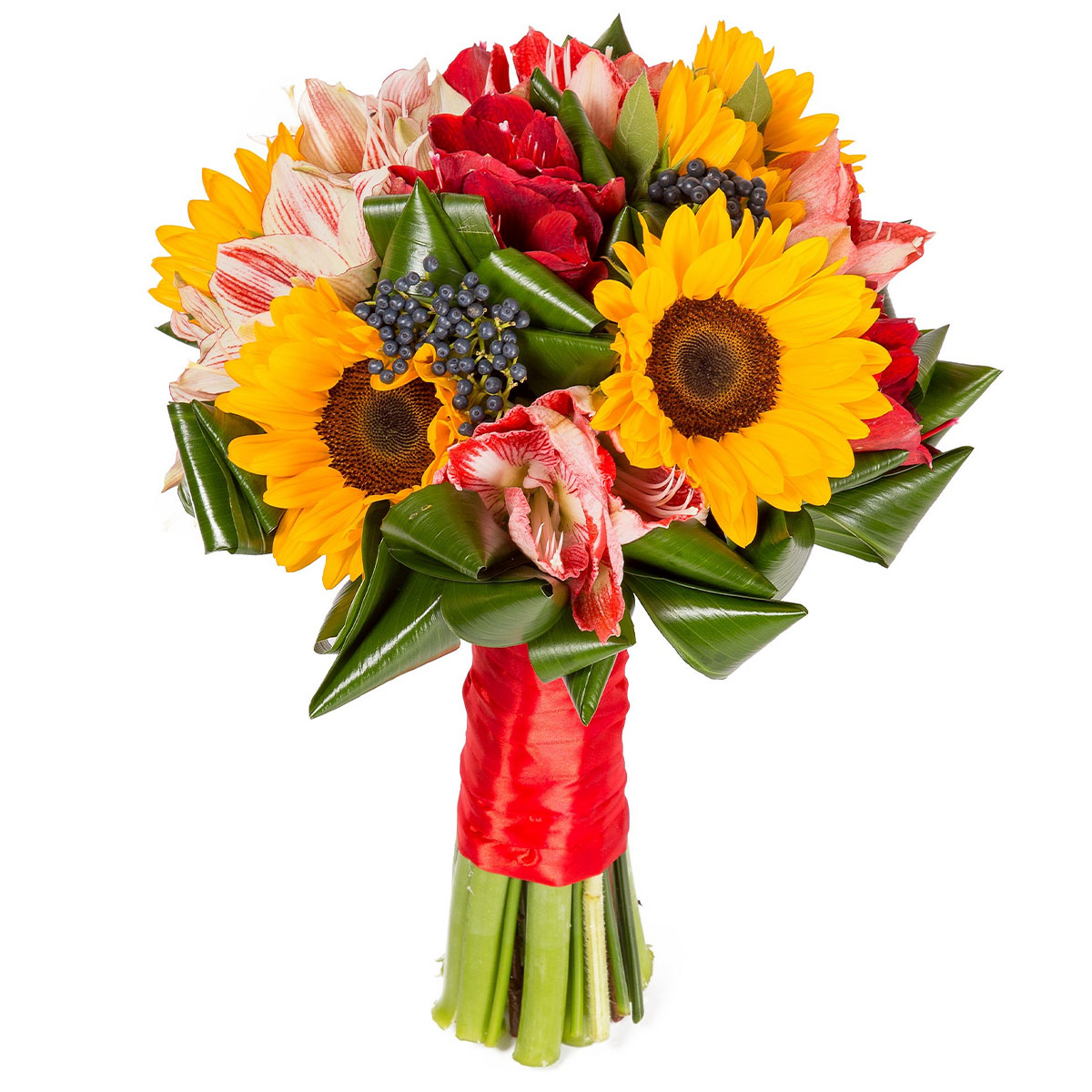 Подсолнух, амариллис, аспидистра. Упаковка (лента, пленка, крафт, сетка, пленка матовая)
