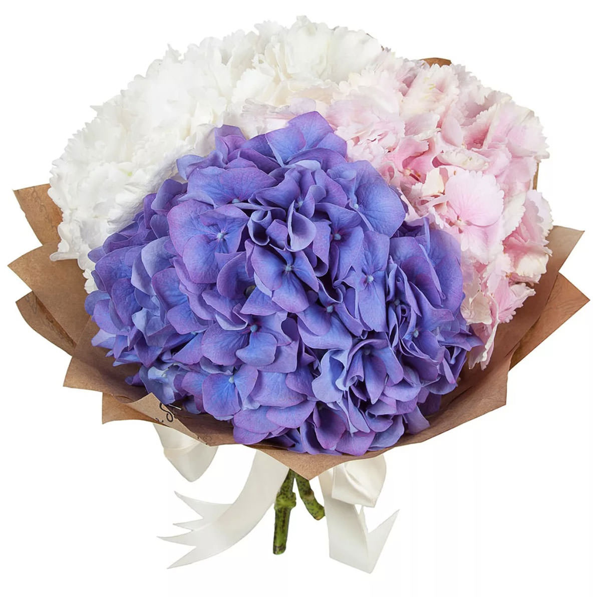 Белая, розовая, фиолетовая гортензия.
