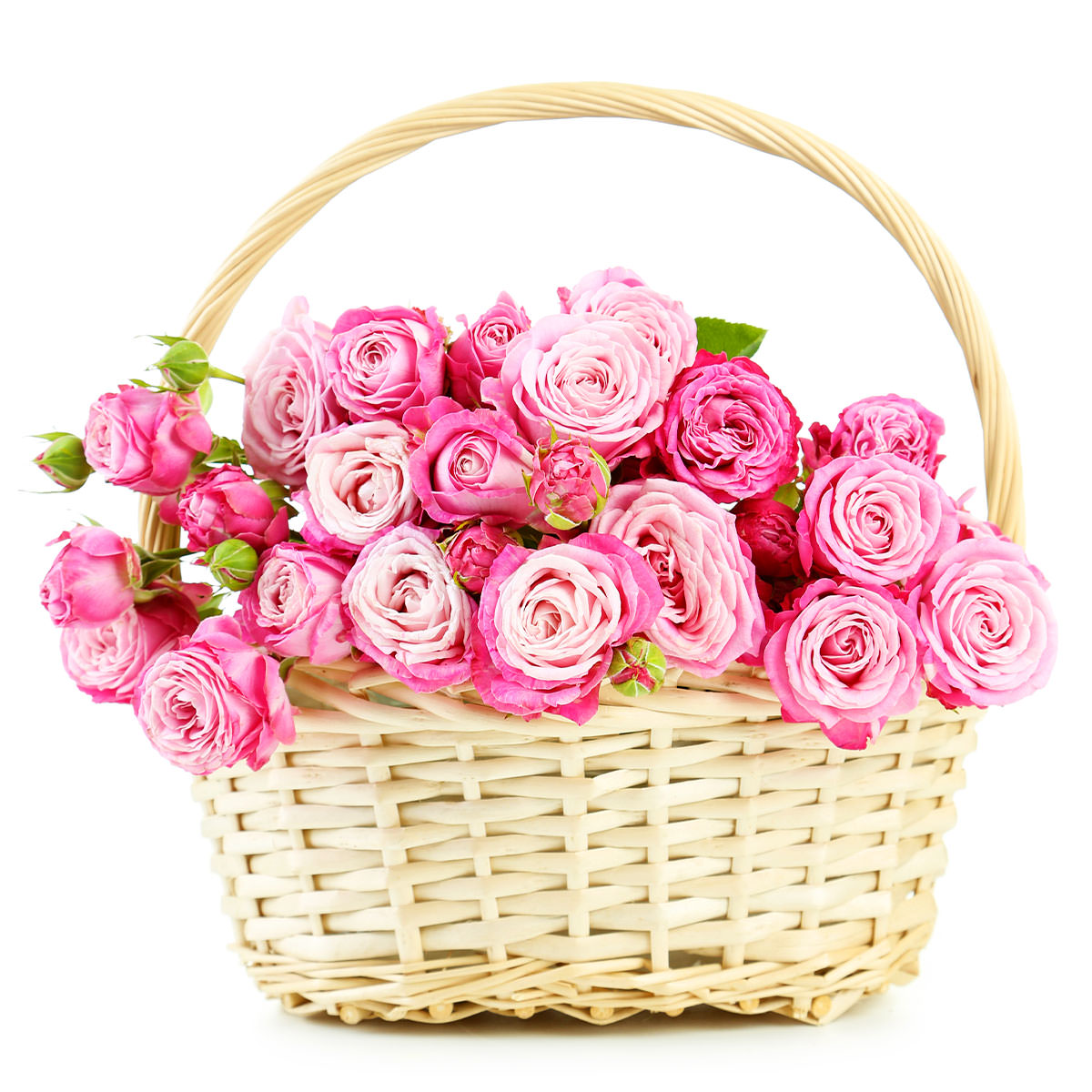 Роза кустовая розовая. Упаковка (Корзина, оазис, ящик).