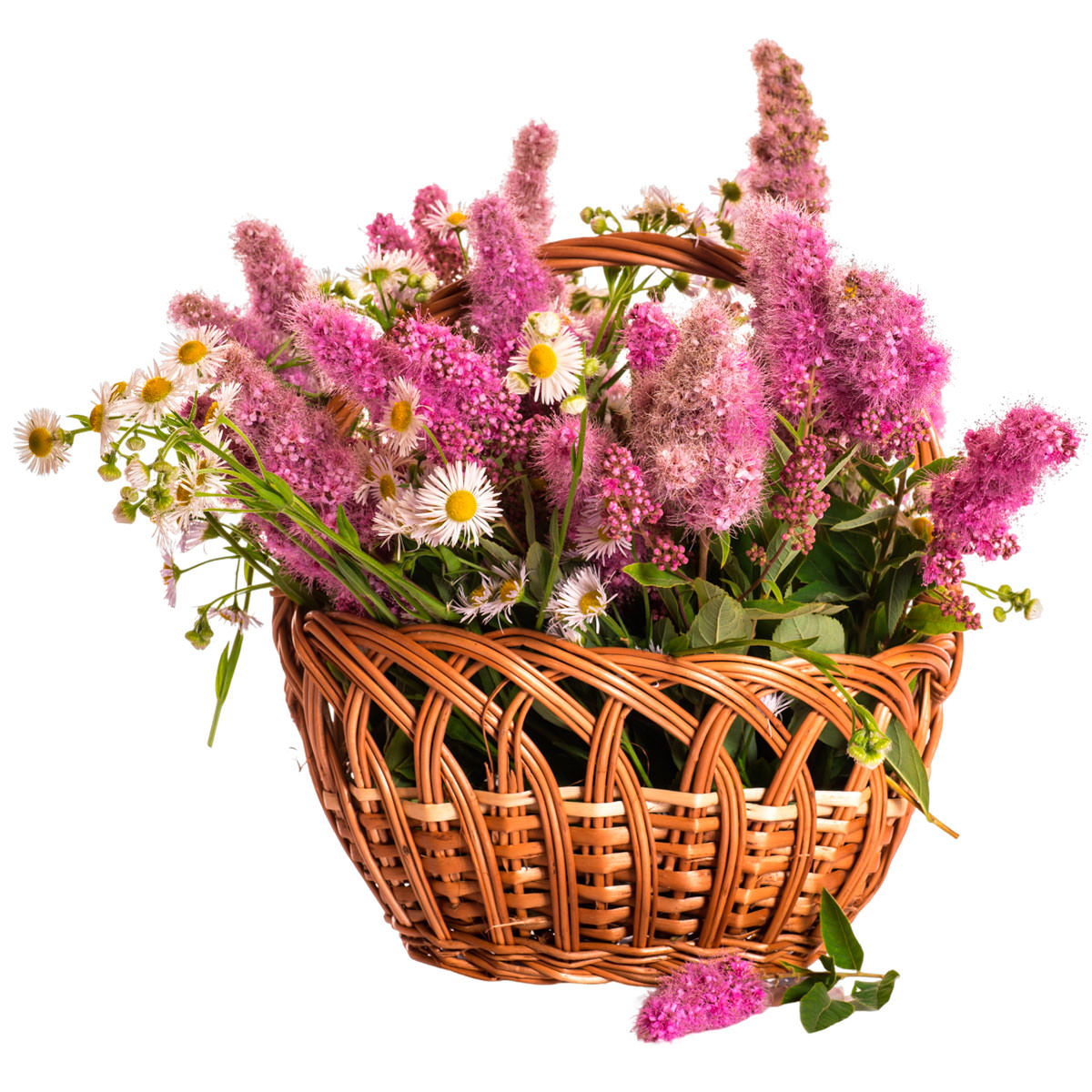 Спирея иволистая, эригерон. Упаковка (Корзина, оазис, ящик).