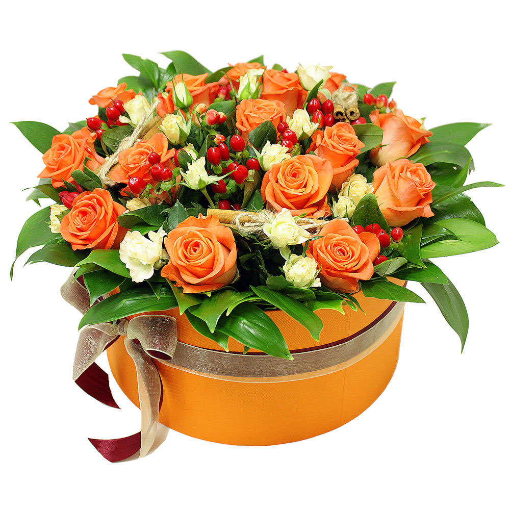 Цветы в коробке «Оранжевый закат» с доставкой по г Тотьма: вы можете заказать букет в цветочном гипермаркете «Флормания» по цене от 2990 руб.