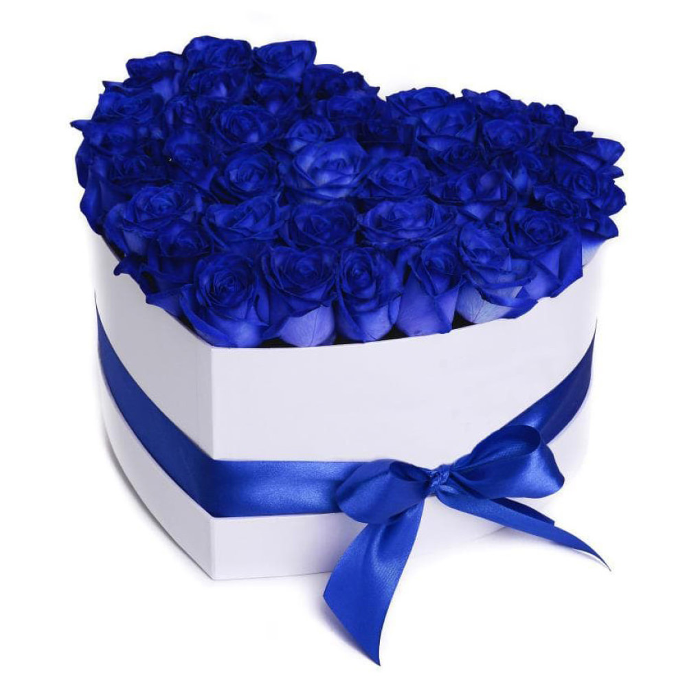 Цветы в коробке «Синее сердце» с доставкой по г Тотьма: вы можете купить букет в супермаркете цветов «Флормания» по цене от 2990 руб.