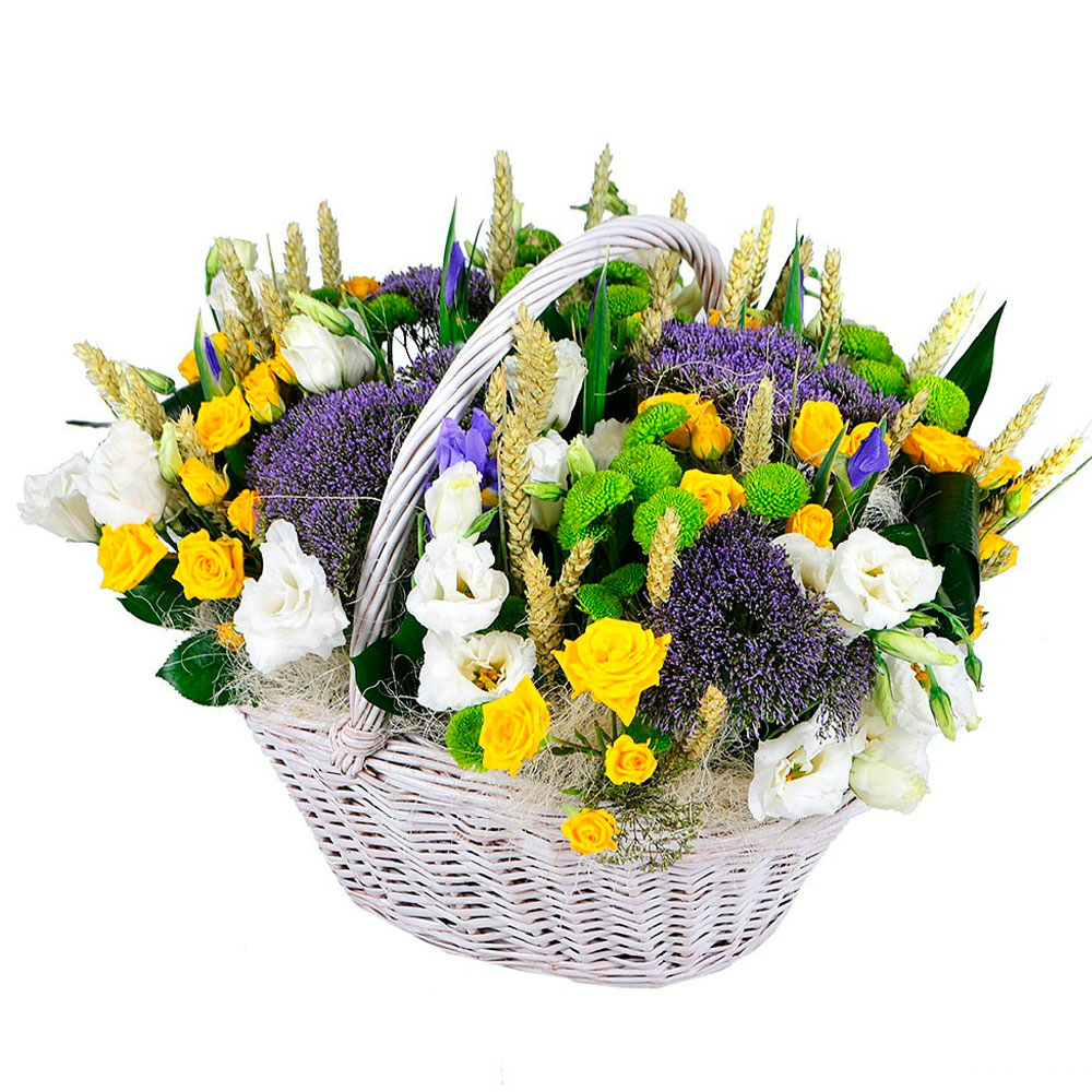 Цветы в корзинке «Летняя лужайка» с доставкой по г Тотьма: вы можете купить букет в цветочном гипермаркете «Флормания» по цене от 3590 руб.