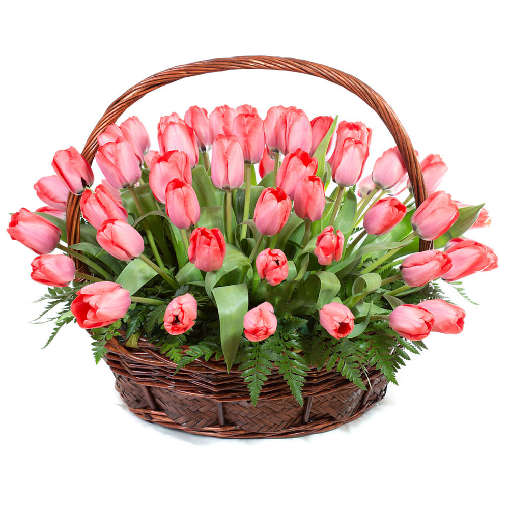 Цветы в корзинке «Розовые тюльпаны» с доставкой по г Тотьма: вы можете заказать букет в онлайн-магазине «Флормания» по цене от 3590 руб.
