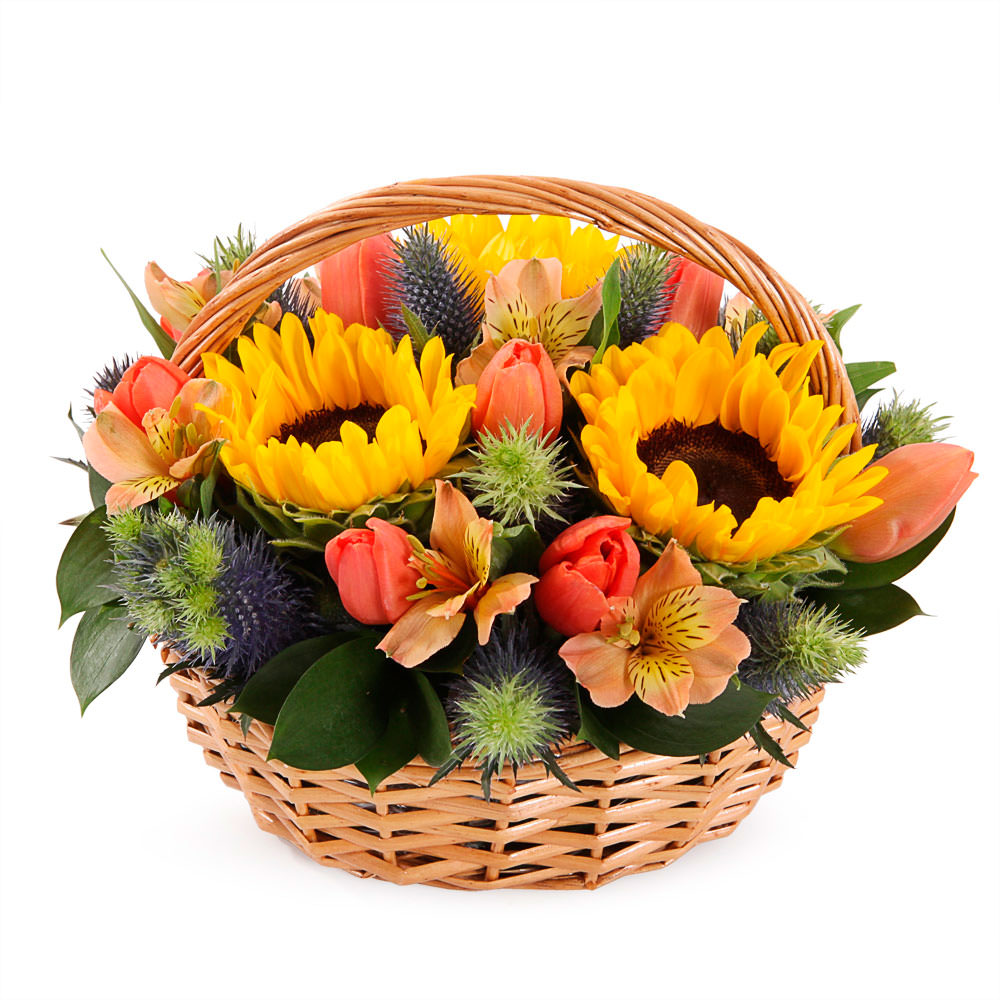 Цветы в корзинке «Солнечный день» с доставкой по г Тотьма: вы можете купить букет в интернет-магазине цветов «Флормания» по цене от 3590 руб.
